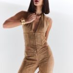 Emma corset features a plunging halter neckline, fully buckled with front hook. Made of nudish suede and corsetry boning giving your waist a much sexier silhouette. Double lined to ensure comfort. – no pads